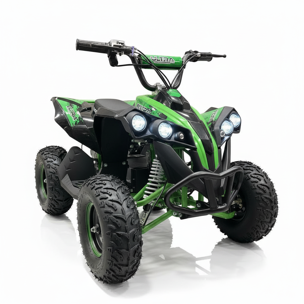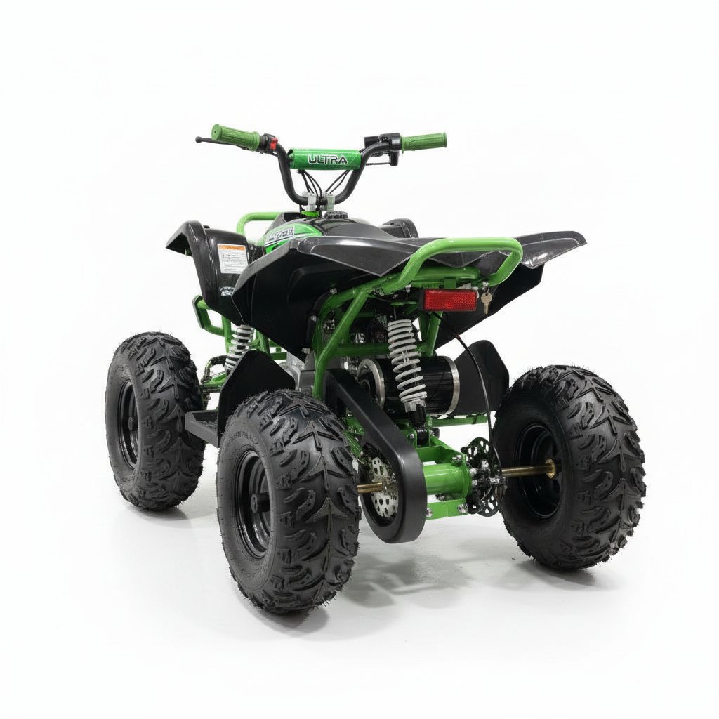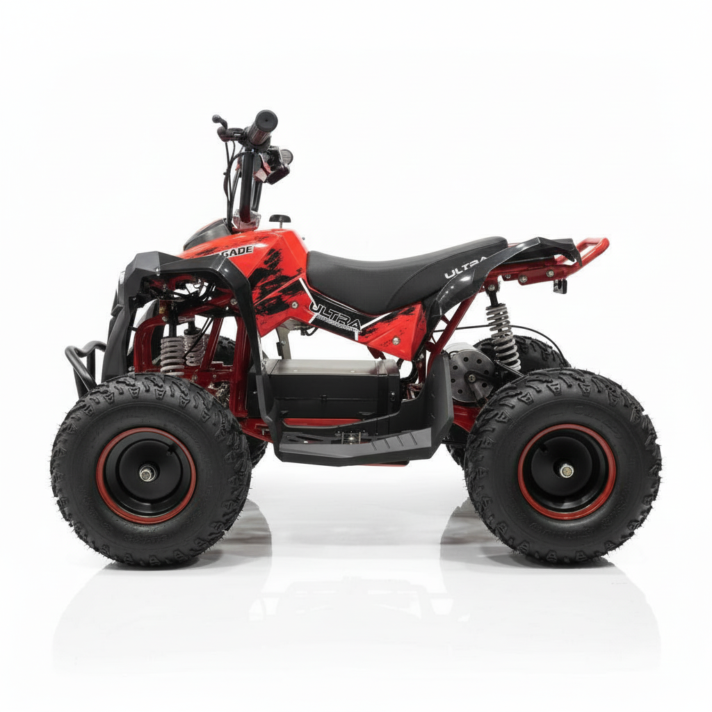 Deze 1000 watt brushless kinderquad van CarKiddo behoort tot de meest krachtige kinderquads uit ons assortiment. De brushless motoren staan bekend om hun extreem lange levensduur en ongekende vermogen, deze motoren hebben 40 tot 50% meer vermogen dan de standaard motoren. Deze kinderquad is elektrisch en in meerdere kleuren beschikbaar. Deze elektrische kinderquad 48v beschikt over een enorm vermogen en een accu met een super lange levensduur. Dit in combinatie met het extra stevige metalen frame, de uitstekende vering en de rubberen terreinbanden zorgen ervoor dat deze kinderquad geschikt is voor uiteenlopende soorten terreinen. Hierbij kan deze elektrische kinderquad een gewicht tot maximaal 90 kg aan. Dit is de ideale kinderquad om mee te beginnen voor jouw zoon of dochter.