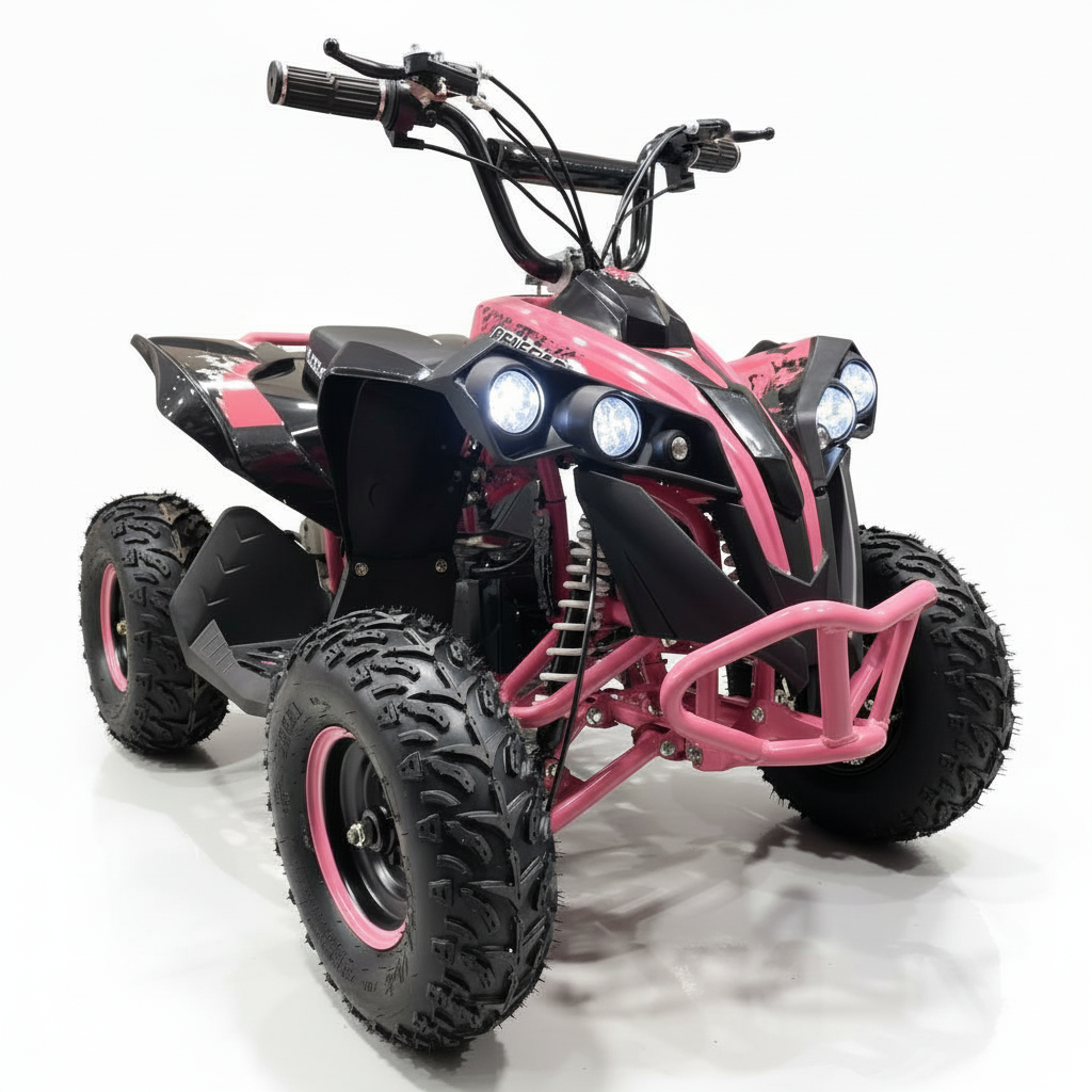 Deze elektrische kinderquad is roze van kleur. Dit ziet er fenomenaal uit. De stoere uitstraling wordt nog eens versterkt dankzij de felle ledverlichting. Bijkomend voordeel van deze verlichting is dat de quad te allen tijde goed zichtbaar is. Deze kinderquad kan zowel voor- als achteruit rijden en het is een fluitje van een cent om deze kinderquad te bedienen. Deze 1000 watt brushless kinderquad heeft ook een neutrale stand. De maximale snelheid van deze elektrische kinderquad is 30 km/u. Je kunt de maximale snelheid ook instellen op 5 km/u of 15 km/u met behulp van de uitneembare sleutel. Zo behoud je als ouder zelf de controle.