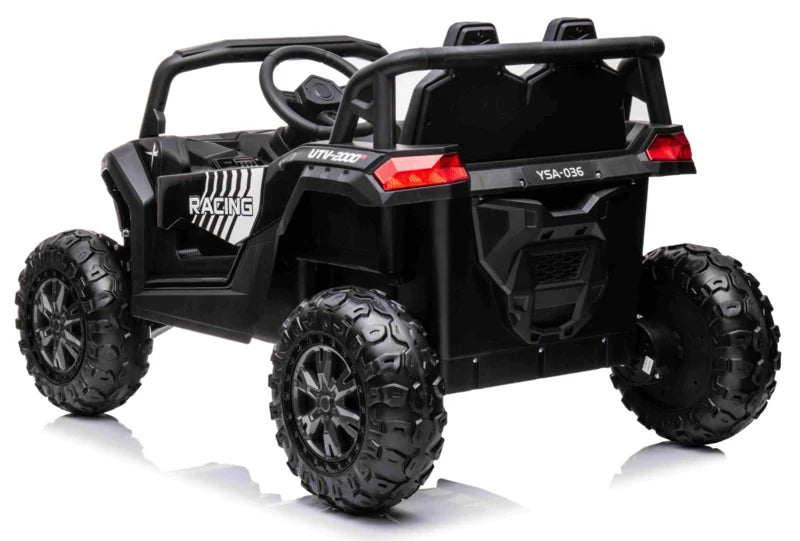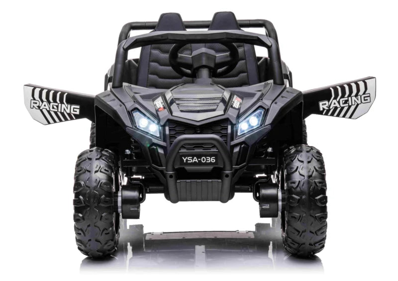 Met een maximum snelheid van 6 km/h is dit de ideale kinderauto voor jonge kinderen. Bovendien behoud je als ouder altijd de controle dankzij de meegeleverde afstandsbediening. Extra leuk is het feit dat deze kinderauto voorzien is van een MP3 spelers met USB, FM radio, bluetooth en AUX aansluiting. Zo kan je kindje tijdens het rijden altijd luisteren naar zijn of haar favoriete muziek. De stoere kleurencombinatie voorziet deze kinderauto van een strak en cool uiterlijk. Deze 1,5-persoons elektrische buggy heeft een extra grote 12V accu. Zo kan er lang gereden worden zonder dat de kinderauto opgeladen hoeft te worden.
