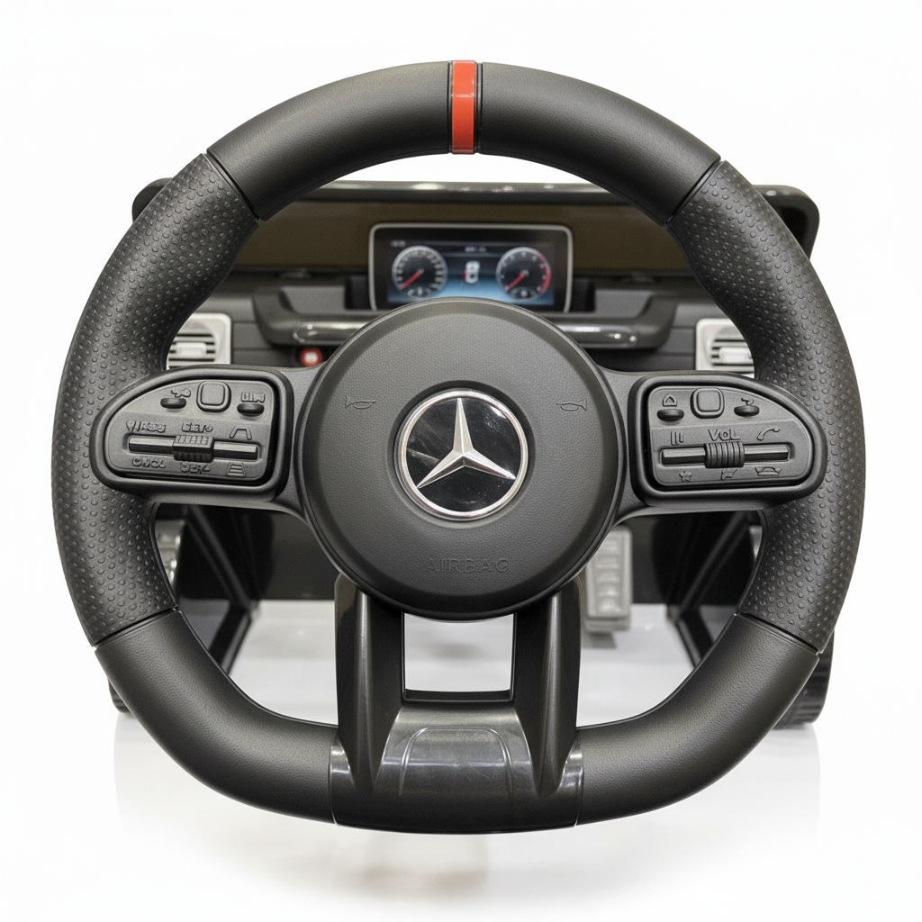 De Mercedes G63 AMG kinderauto is uitgerust met echte rubberen banden, waardoor kinderen comfortabel kunnen rijden op verschillende ondergronden zoals tegels, asfalt, klinkers, grind of zelfs in de tuin. De stevige bouw en hoogwaardige materialen zorgen ervoor dat de kinderauto stabiel, veilig en duurzaam is. Zo genieten kinderen van een soepele, stille en comfortabele rijervaring.