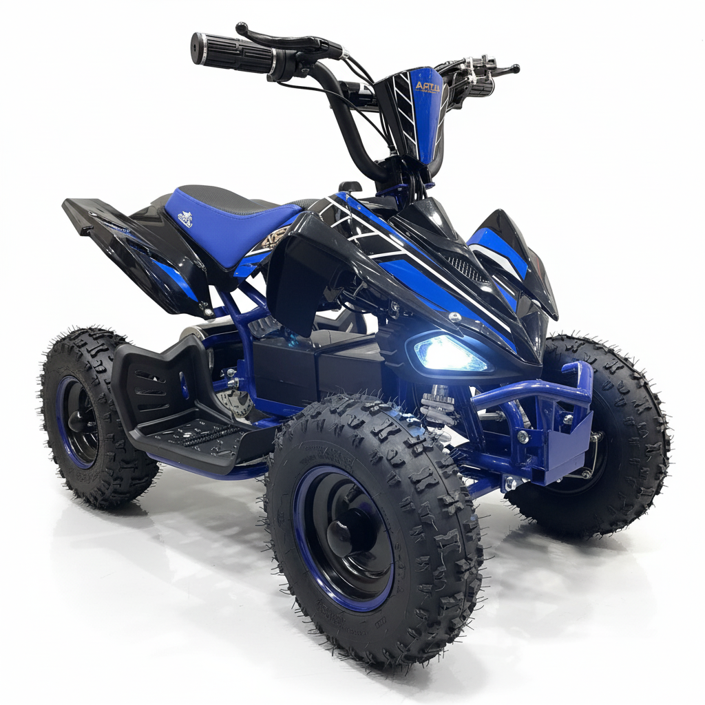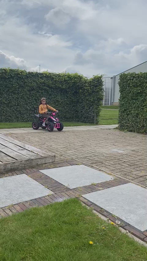 Een kinderquad is bedoeld voor gebruik op je eigen terrein of op plekken die hiervoor geschikt zijn, bijvoorbeeld een crossbaan. Of er nu gereden moet worden op gras, zand of op asfalt, het kan allemaal met dit model dankzij de rubberen terrein banden. Bovendien kan deze kinderquad tegen een stootje dankzij het extra stevige metalen frame en de solide veringen. De combinatie van de 1000 watt brushless motor en een 36v batterij maakt dit tot een ultramoderne elektrische kinderquad die alles aankan. De brushless motoren staan bekend om hun extreem lange levensduur en ongekende vermogen, deze motoren hebben 40 tot 50% meer vermogen dan de standaard motoren. Hierbij kun je als ouder zelf de maximale snelheid begrenzen: 5 km/u, 15 km/u of 30 km/u. Zo bepaal je zelf hoe hard jouw kleine snelheidsduivel mag.