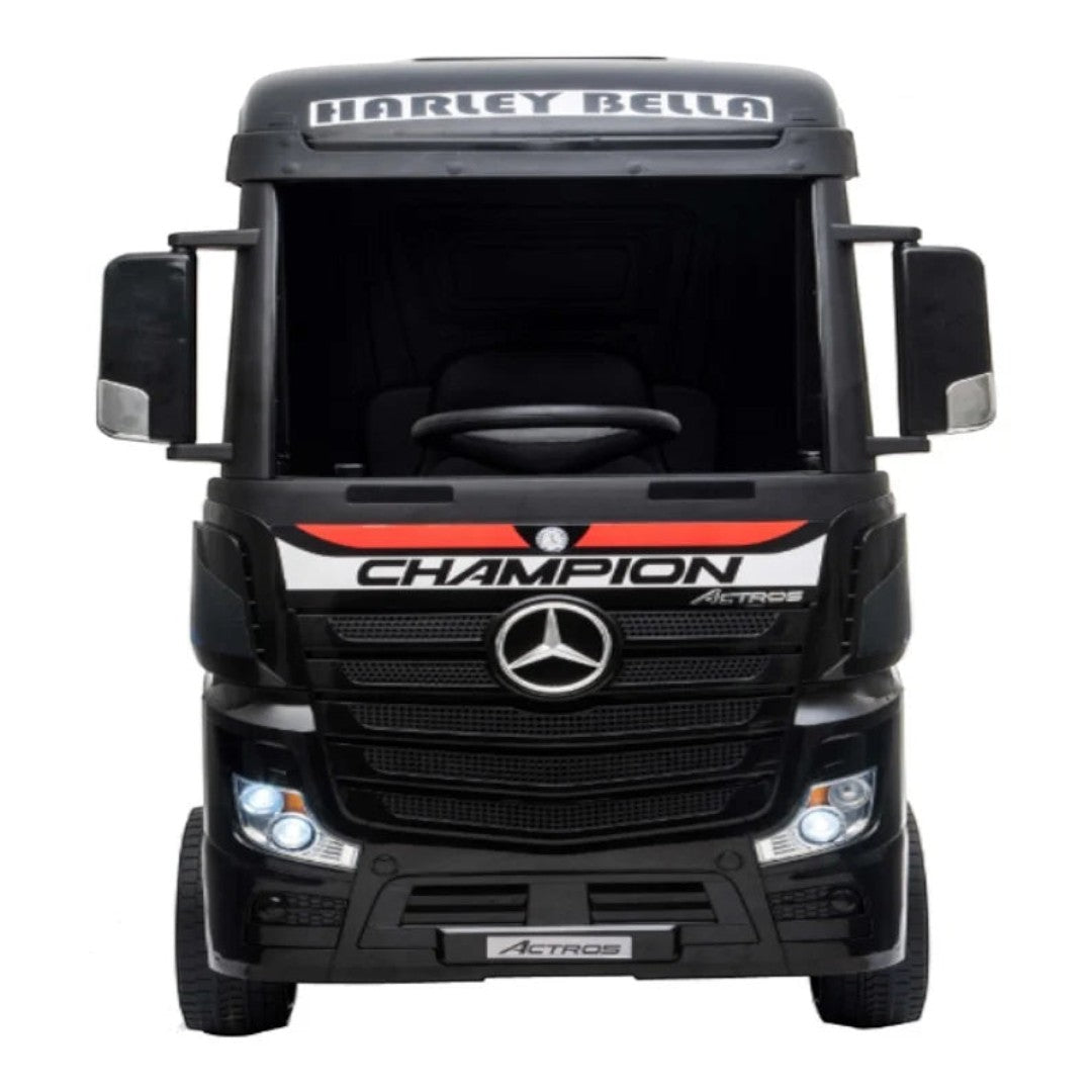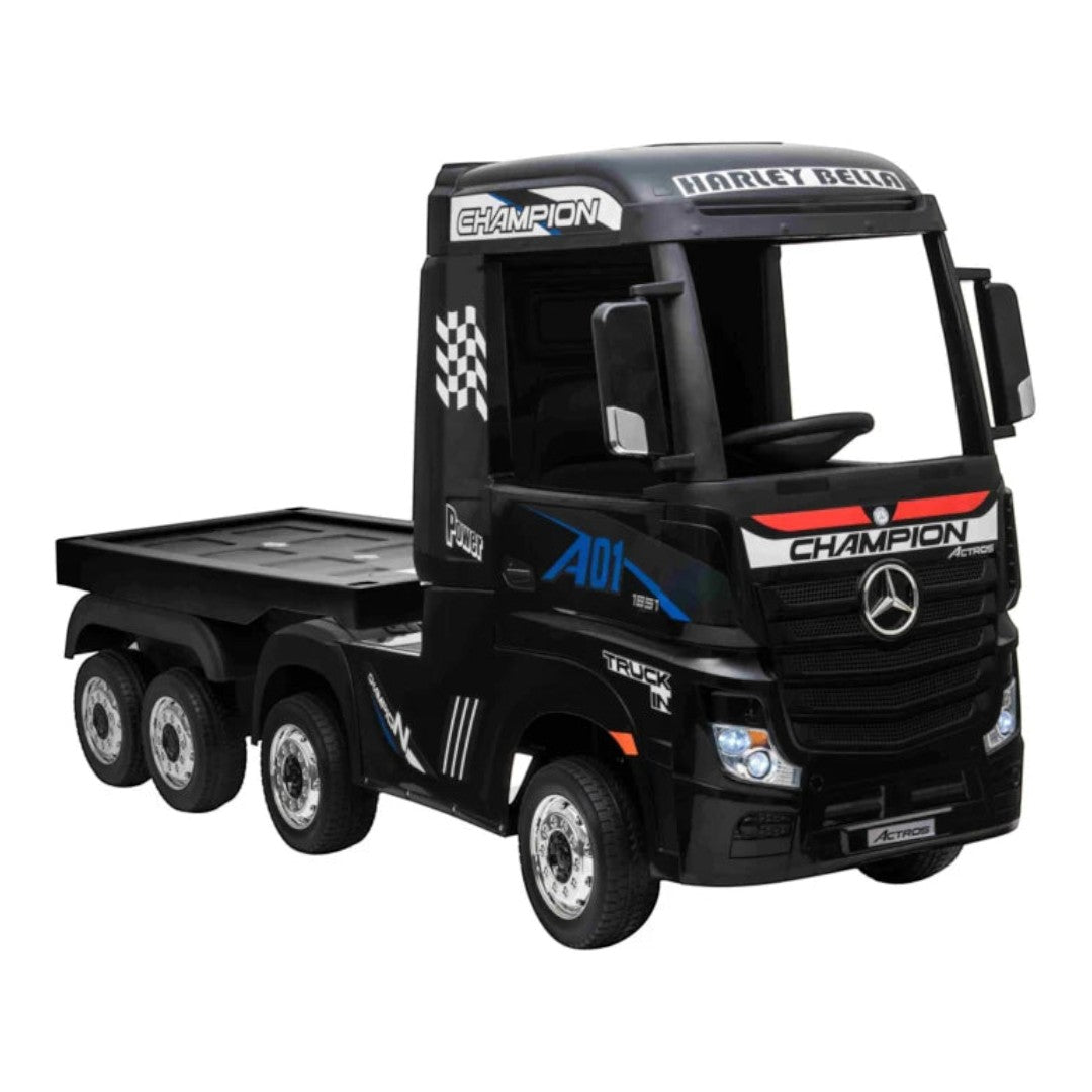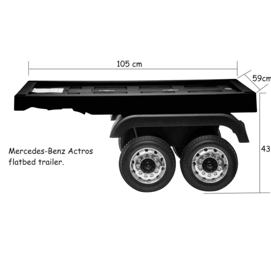 De Mercedes Actros kinderauto + Oplegger. Voor alle kleine vrachtwagenchauffeurs is dit het ideale model! De Mercedes Actros kindervrachtwagen is gebaseerd op de echte Mercedes Actros. Verhuizen? Speelgoed verplaatsen? Geen probleem! Met de vrachtwagen kinderauto krijgen de kids de dag van hun leven. Met de dichte cabine krijgen de kinderen het echte vrachtwagen gevoel.