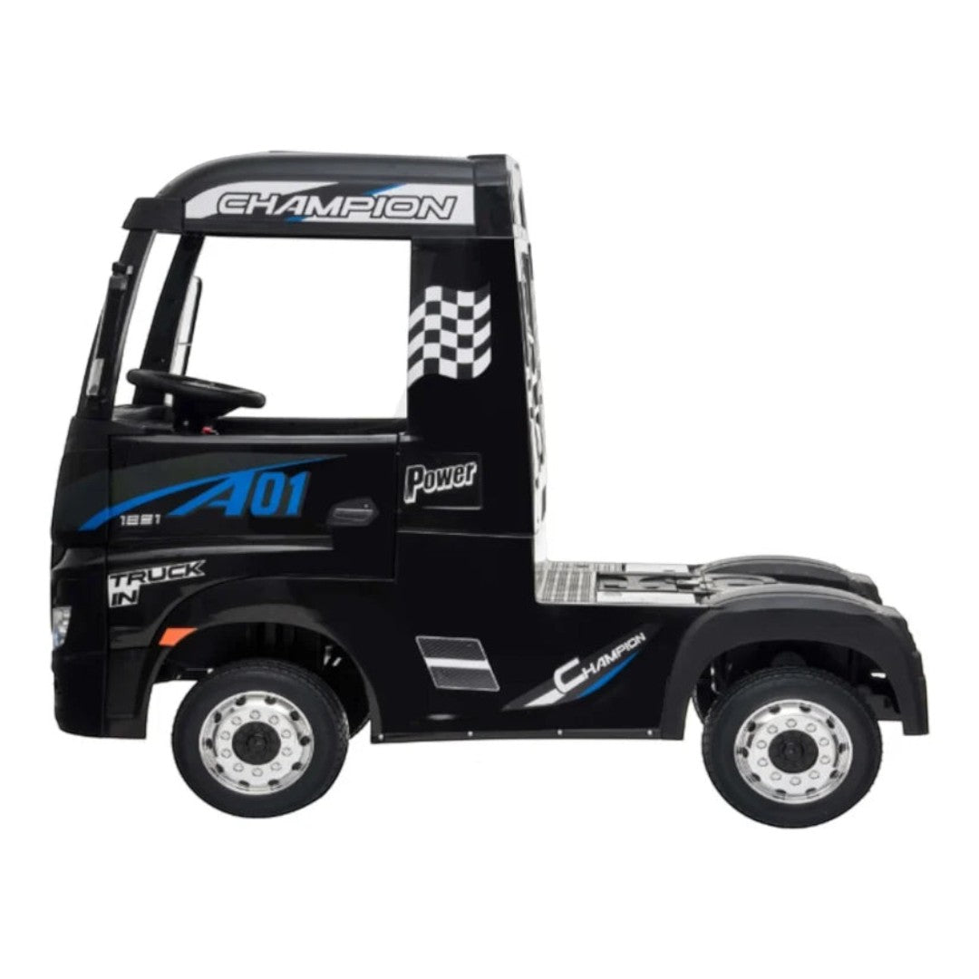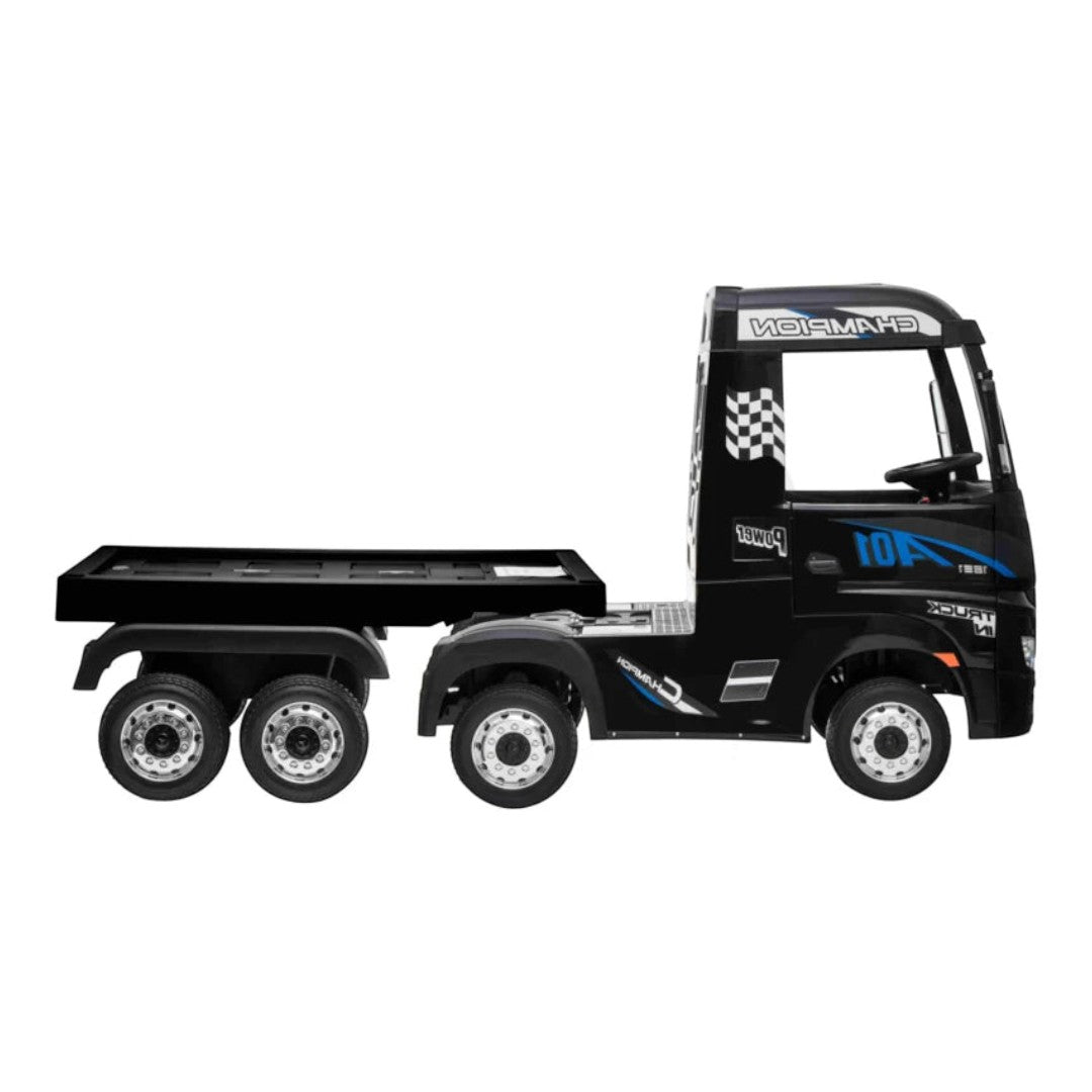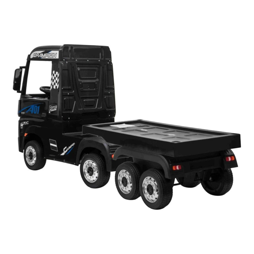 De Mercedes Actros kinderauto + Oplegger. Voor alle kleine vrachtwagenchauffeurs is dit het ideale model! De Mercedes Actros kindervrachtwagen is gebaseerd op de echte Mercedes Actros. Verhuizen? Speelgoed verplaatsen? Geen probleem! Met de vrachtwagen kinderauto krijgen de kids de dag van hun leven. Met de dichte cabine krijgen de kinderen het echte vrachtwagen gevoel.