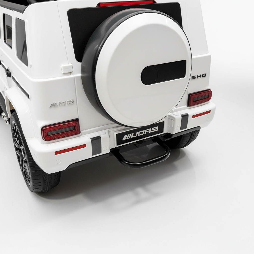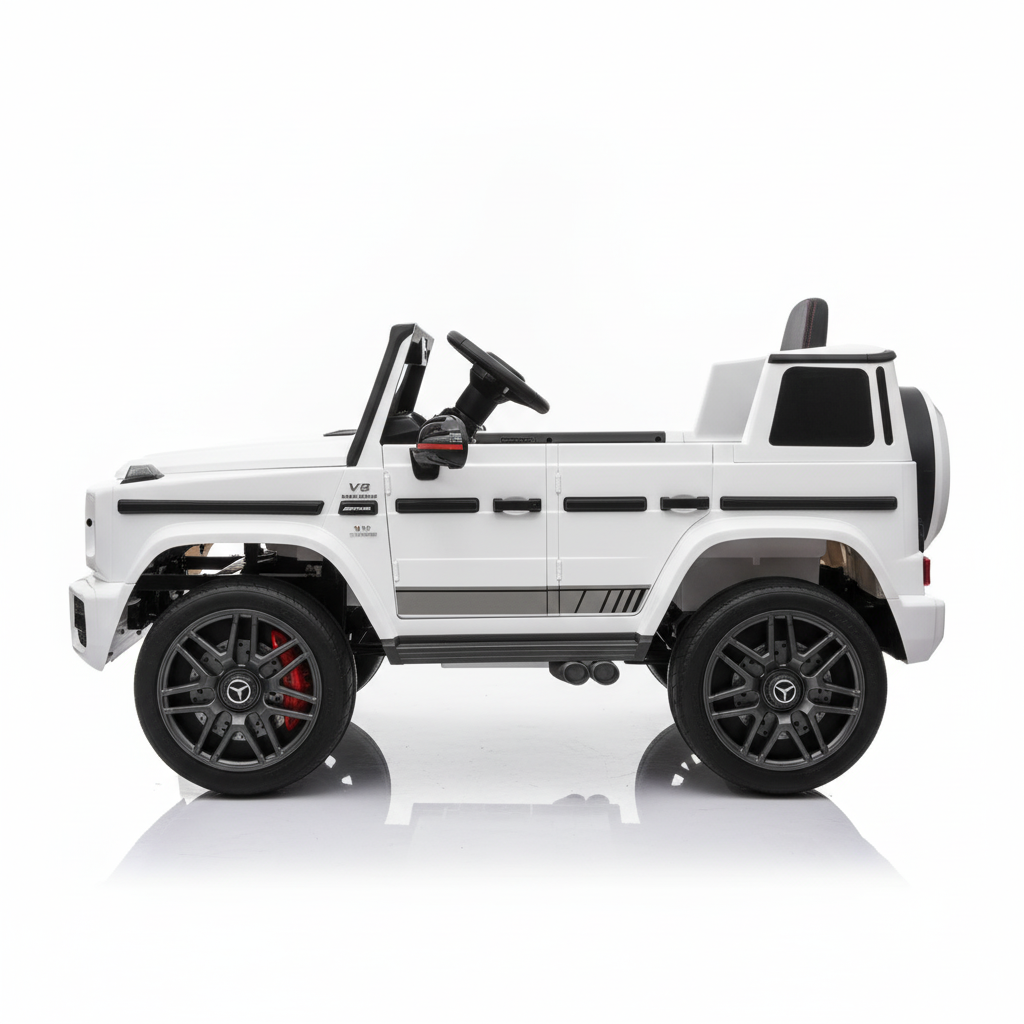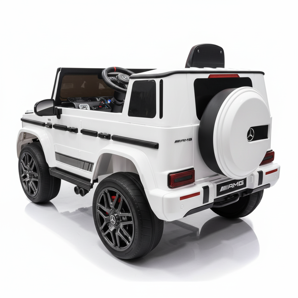 Nieuw  bij CarKiddo de populaire Mercedes-Benz G63 AMG in een extra grote formaat, 24V accu en 4x4. Met zijn 24V accu en vierwielaandrijving is deze Mercedes G63 AMG Elektrische Kinderauto een model dat in het oog springt. Wellicht vraag je jezelf af: in welke mate is dit een echte Mercedes auto? Deze kinderauto heeft een officiële licentie en is dus een echte Mercedes AMG kinder auto. Rijd je zelf in een Mercedes, dan is het extra leuk om je kindje een Mercedes G63 24V cadeau te doen. Dan kan hij of zij in dezelfde auto als papa en mama rijden. Voor een kind spreekt dit enorm tot de verbeelding. Maar deze elektrische kinderauto van Mercedes beschikt over meer eigenschappen die dit model een aankoop waard maken. Let op dit model is dus grote dan de standaard 12V G63 AMG.