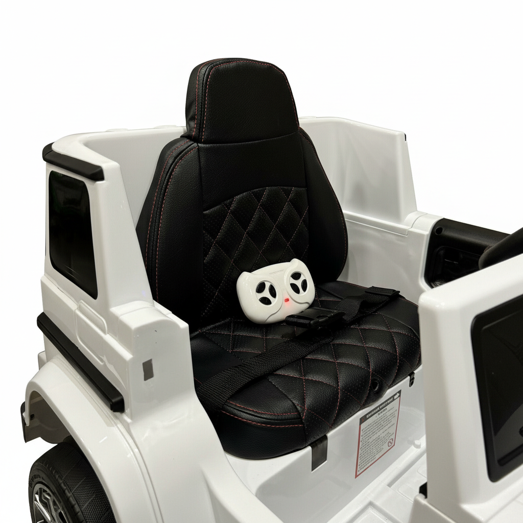 Met een maximale snelheid van 7 km/h, en twee snelheidsstanden in totaal, hoef je jezelf geen zorgen te maken dat deze Mercedes G63 kinderauto te snel kan gaan. Bovendien wordt een afstandsbediening meegeleverd, zodat je ook als ouder handmatig de auto kunt besturen. De leren stoel zorgt ervoor dat je kindje fijn kan zitten. De stoel is voorzien van een gordel. Iedere rit wordt een feestje dankzij de ingebouwde MP3-speler. Deze accessoire is voorzien van Bluetooth, USB en een AUX ingang. Tijdens het rijden kan er geluisterd worden naar muziek en verhaaltjes.