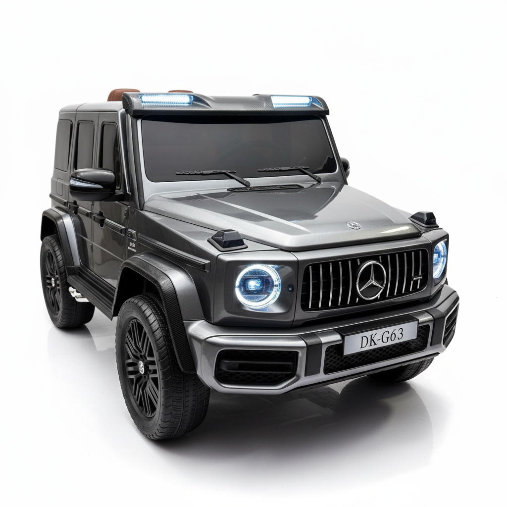 Met deze grijze Mercedes G63 kinderauto maak je indruk. Dit 2-persoons model is voorzien van voor en achter verlichting, soft start en een claxon. Hierdoor is deze kinderauto altijd zichtbaar en hoorbaar. Je kindje zal ongelofelijk blij zijn met dit cadeau. Daarom koop je deze G-wagon Elektrische Kinderauto metallic-zwart bij CarKiddo. Extra leuk is dat je een kenteken op maat kan laten maken, bijvoorbeeld met de naam van je kindje. Liever de kleinere 24V uitvoering van de G63? Kijk dan even hier: Mercedes G63 AMG